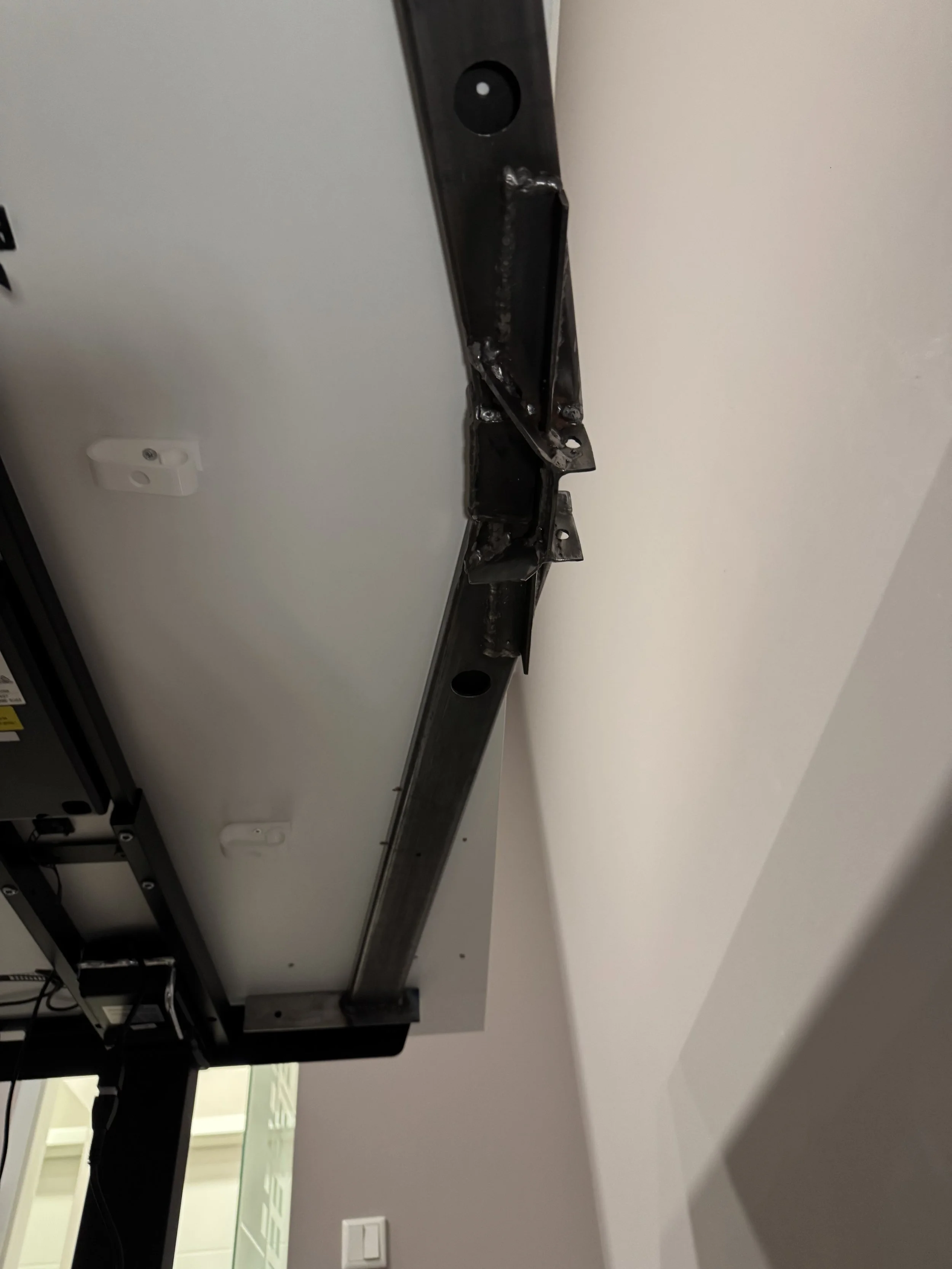 Ziel war es, den Standfuß vom Bildschirm durch eine Halterung zu ersetzen, die weiterhin eine Höhenverstellung des Schreibtisches ermöglicht.