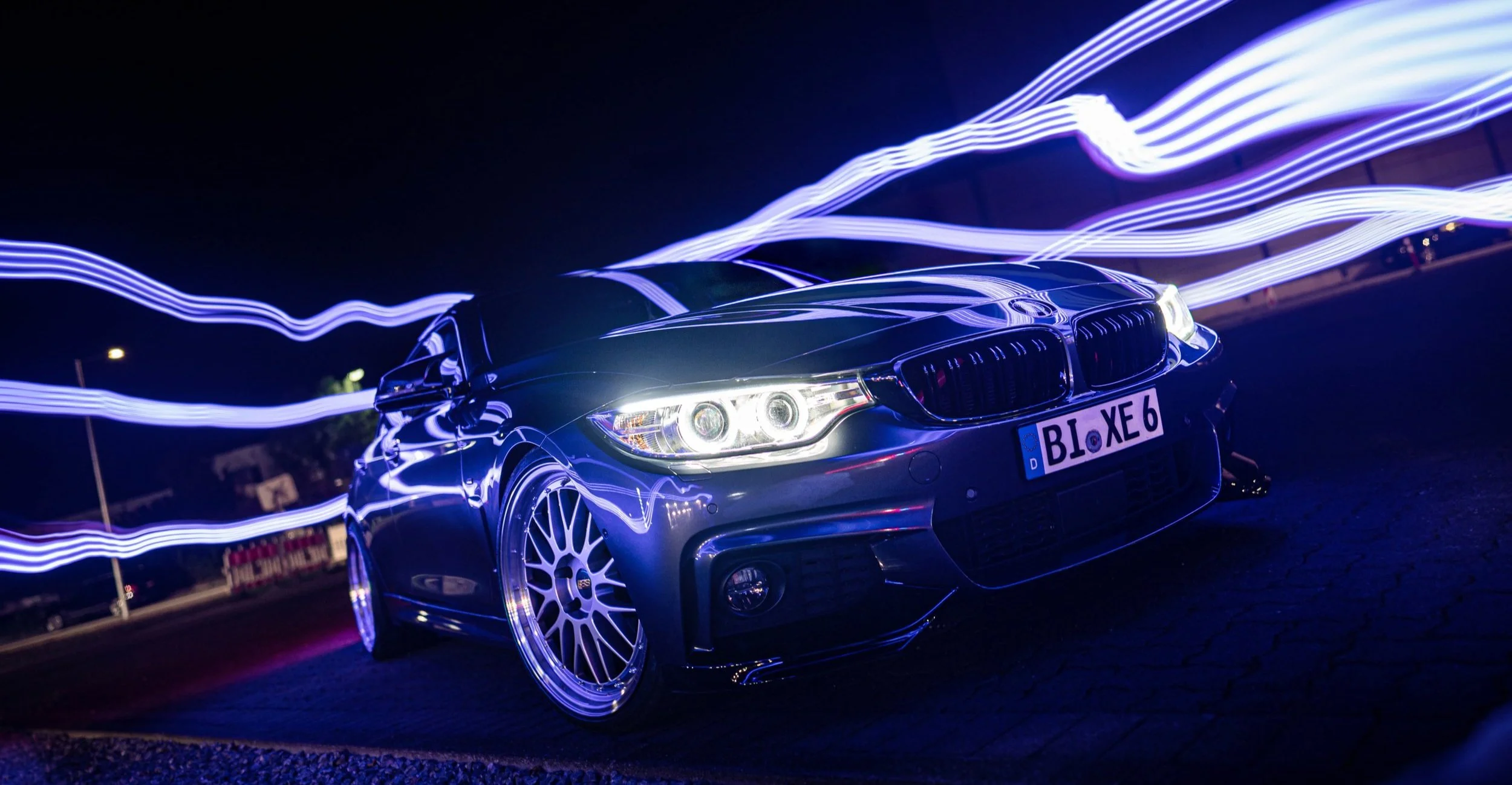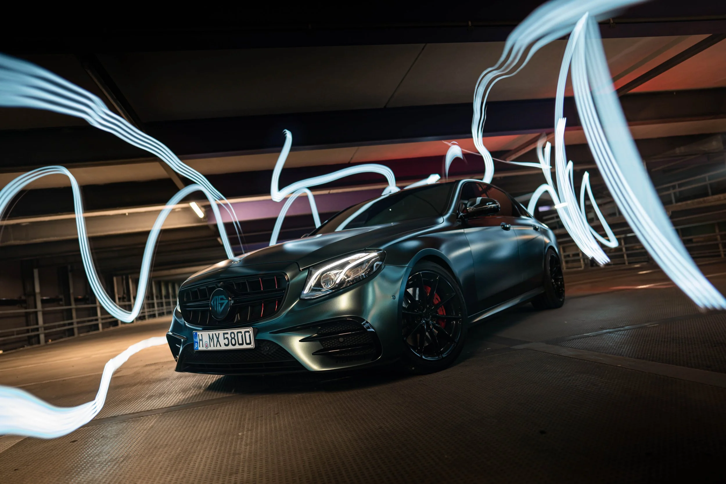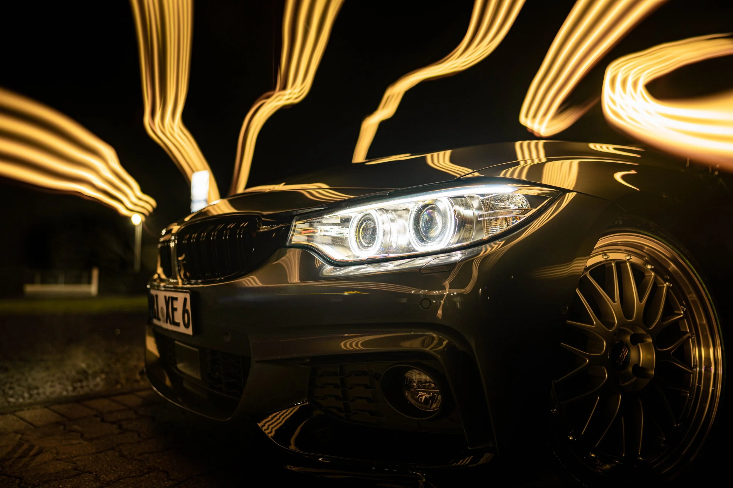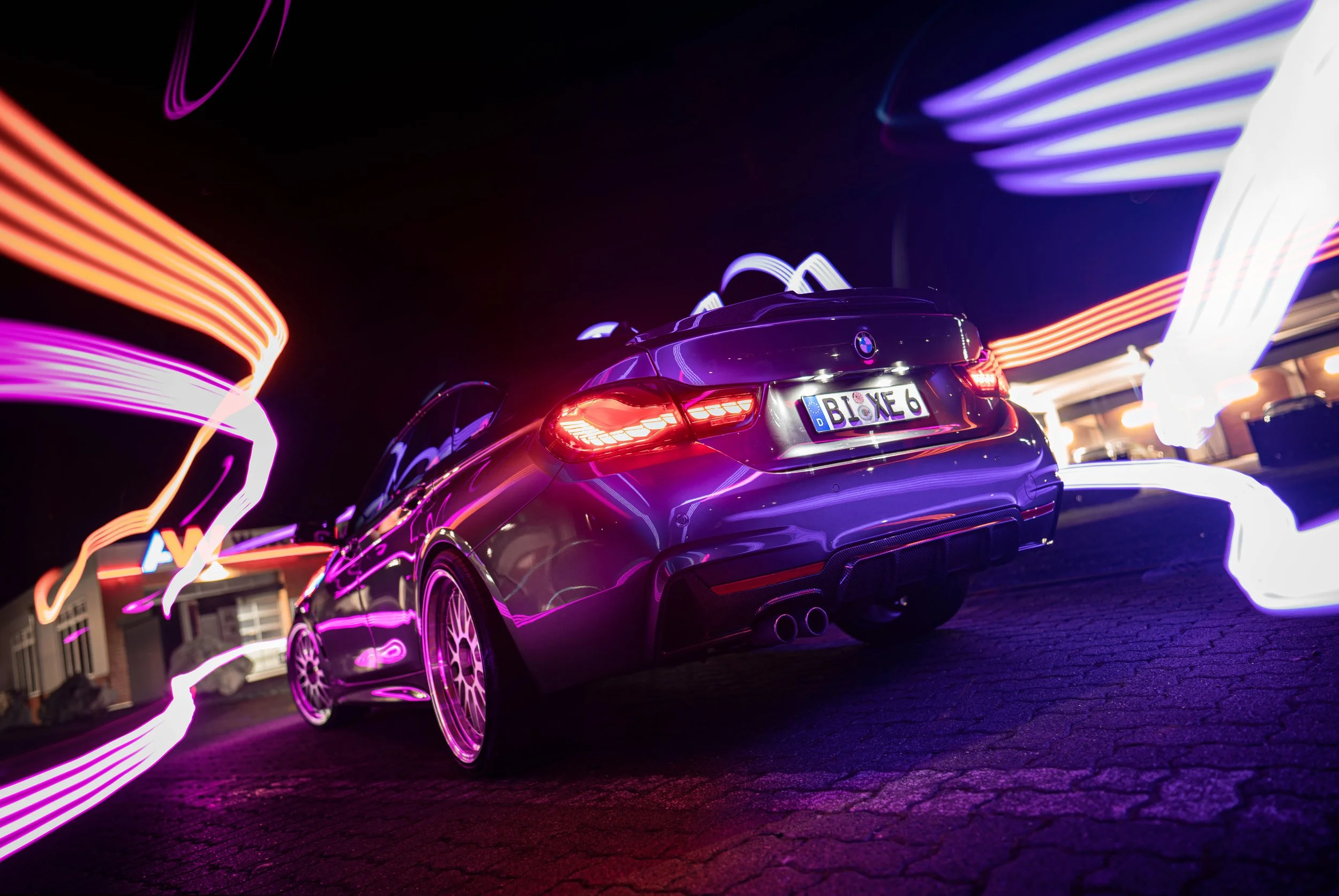 Die Lichtspuren erzeugen ein Gefühl von Bewegung, während die Perspektive für Spannung sorgt und die Reflexionen von dem Licht im Lack für eine sehr auffällige Ästhetik sorgt.